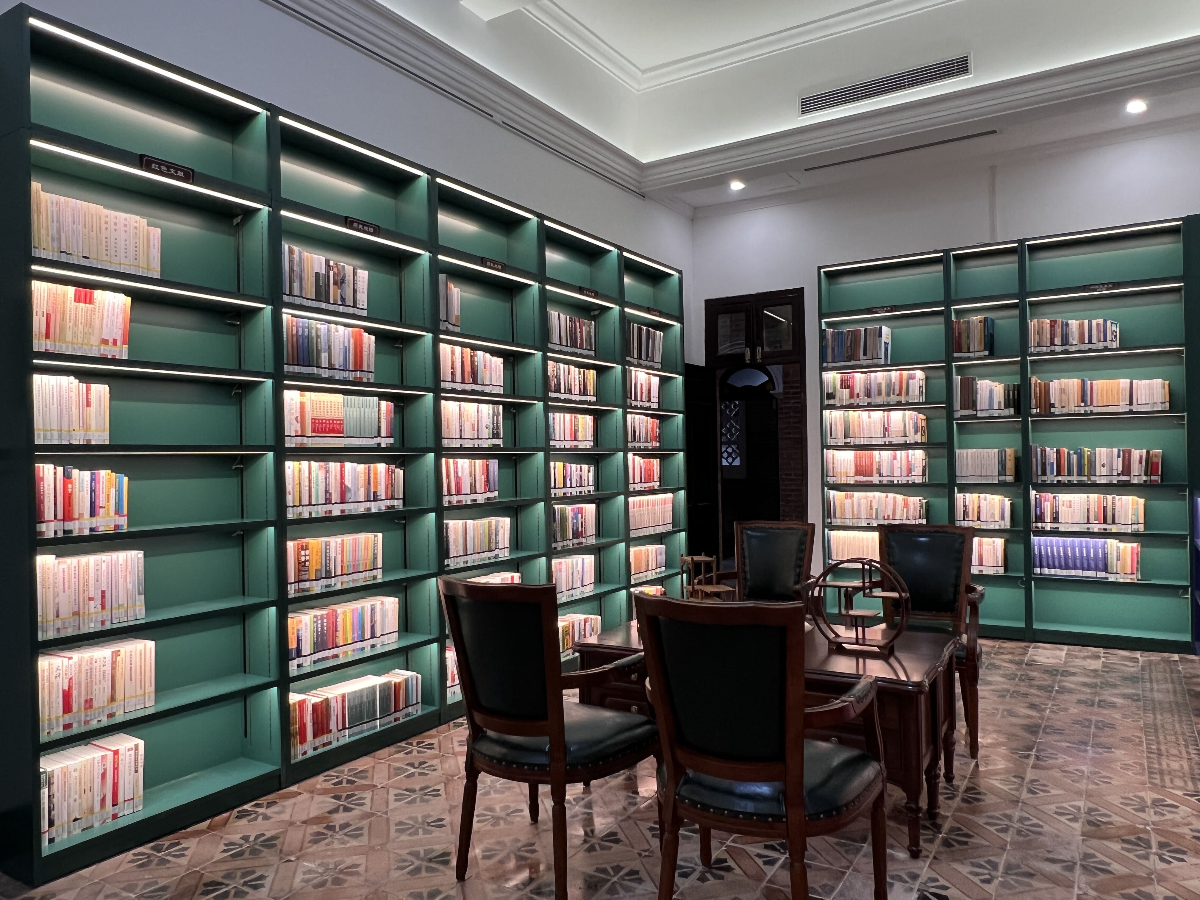 “柏园粤书吧”定位于历史文献特色主题书吧,共配置图书近4000册,设有捐赠图书专架,配备文物考古类主题以及中国好书、经典图书、少儿读物等图书,融合图书阅读、艺术展览、文化沙龙等多元文化业态,延续柏园作为历史建筑的文化传承功能,为游客和读者带来丰富、多元的文化体验。