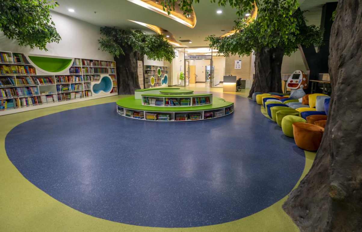 此外,南沙图书馆的亲子阅览区也很受欢迎。以“森林”“阳光沙滩公园”为主题,室内布置多采用具有弧线的书架、书柜与桌椅,利用曲线来表现水的形态,并保护儿童安全。