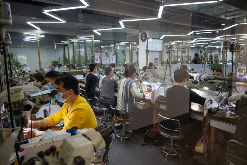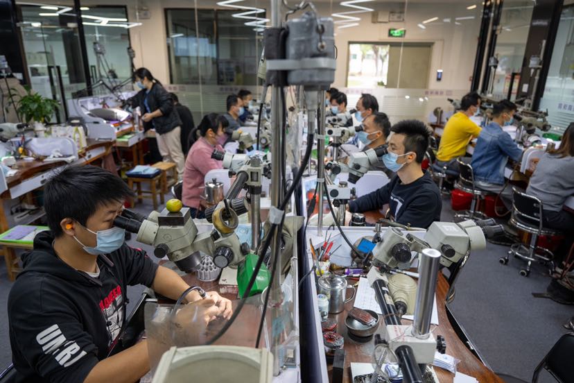 目前,番禺区珠宝产业企业复工复产率达98%以上,目前正值海外订单的季节性高峰期,各企业正卯足干劲、加班加点保生产保进度。