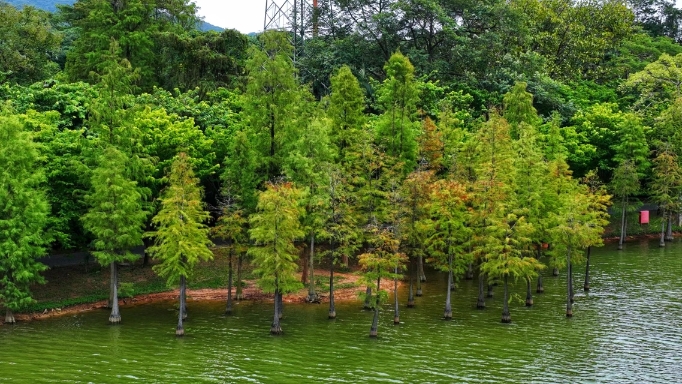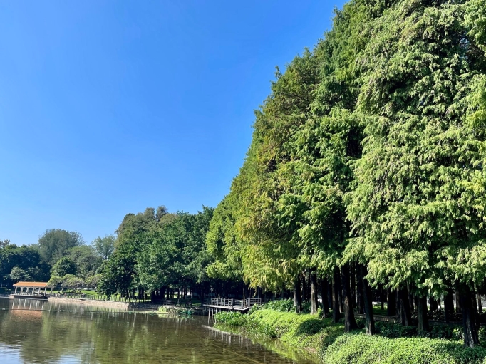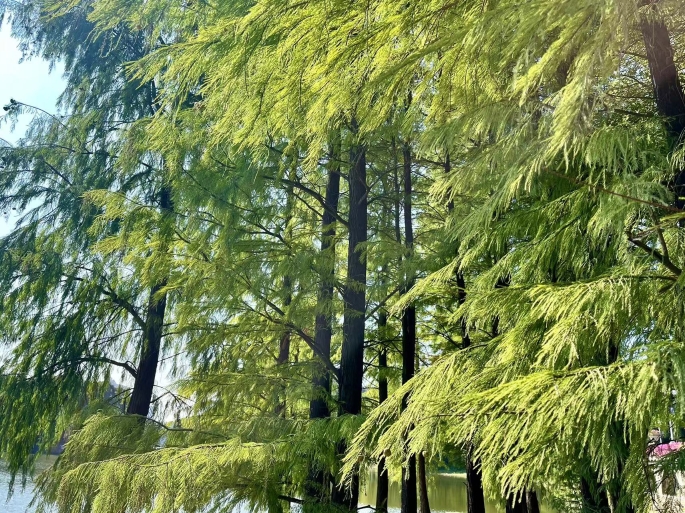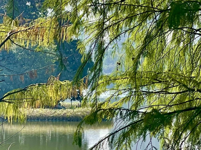 麓湖公园的落羽杉仍郁郁葱葱。(黄岚摄)