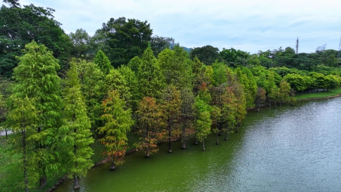 华南国家植物园落羽杉已有部分变黄。(王维宣摄)