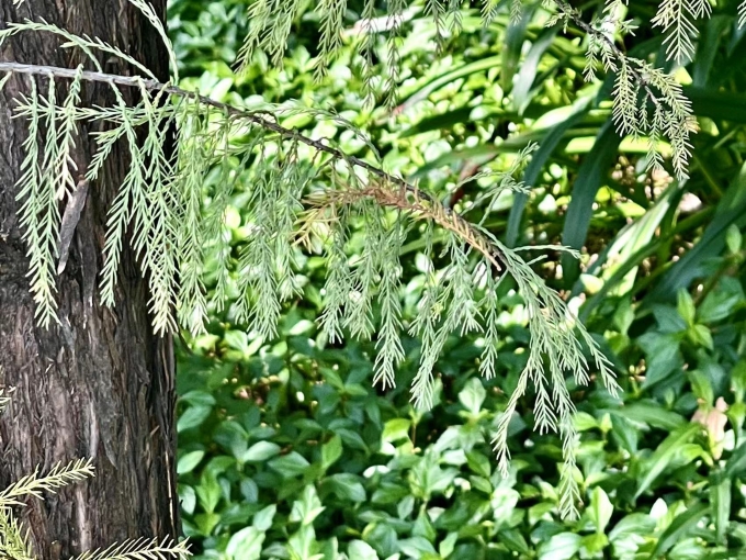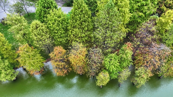 进入“大雪”时节,记者在麓湖公园见到一大片落羽杉仍是郁郁葱葱,细看之下方能看到少数枝条有变黄的迹象。据了解,每年12月至次年1月,落羽杉的变色过程大约可持续一个多月,气温越低变色速度越快,幼树比老树变色速度更快。光照充足条件下,生长在水中的落羽杉红叶期要长于陆生的,譬如水生植物园里的落羽杉,尽管身形比较纤细,气生根也不发达,但年轻的力量绝对不容小觑,每年最早变色的就是它们。