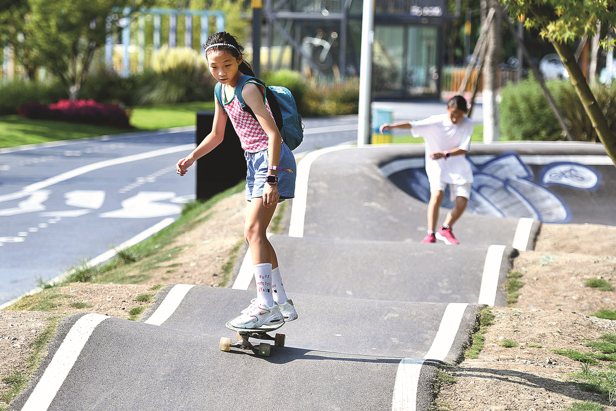 Skyscrapers border a lush green landscape in Shenzhen's central business district. [Photo provided to chinadaily.com.cn]
