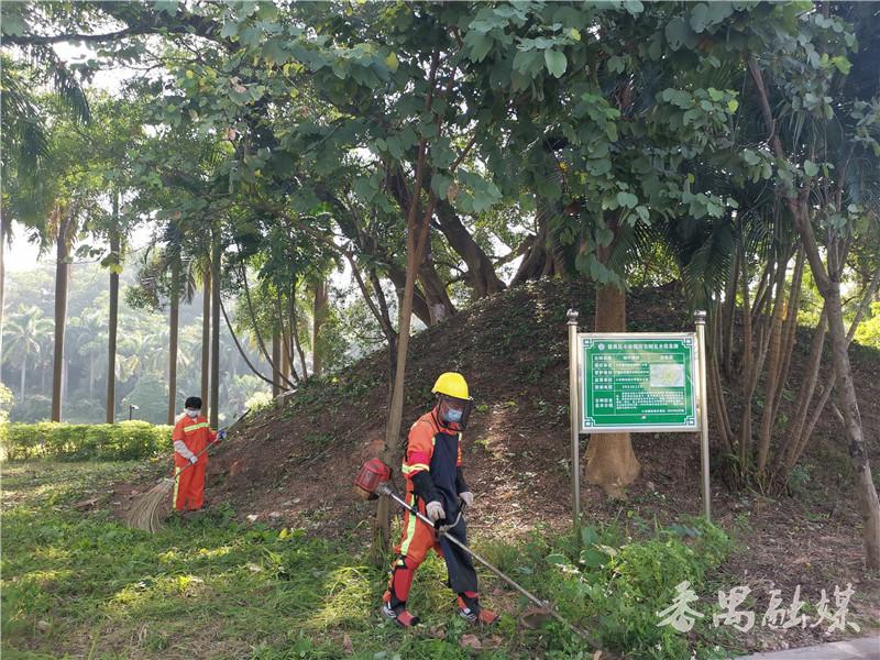 园林工人正在为南亭树一棵140多岁的古树除草