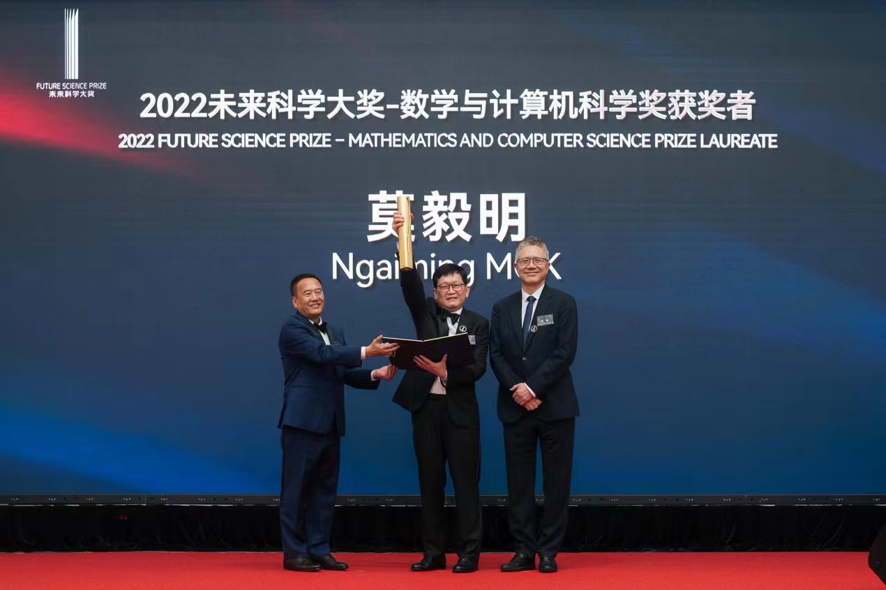 莫毅明因其創立極小有理切線簇(VMRT)理論並用以解決代數幾何領域的一系列猜想,以及對志村簇上的Ax-Schanuel猜想的證明,榮獲「數學與計算機科學獎」,未來科學大獎科學委員會代表王曉東在香港現場宣讀「數學與計算機科學獎」的頒獎理由,並與捐贈人代表虞鋒共同為莫毅明頒發獲獎證書及獎盃。