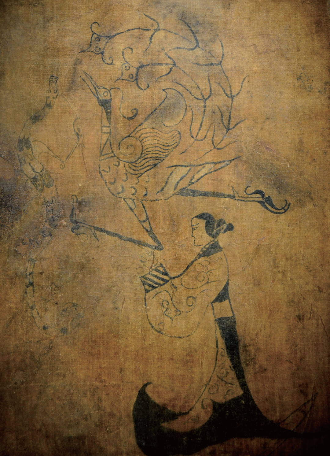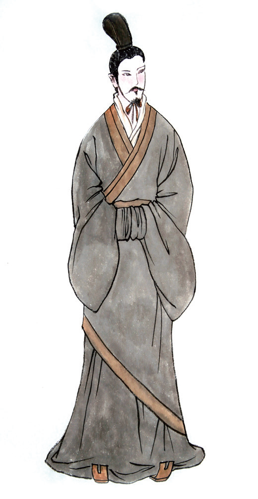 春秋战国至汉代都穿曲裾衣,门襟从领子开始绕身体缠裹,腰间用带固定住。曲裾衣的袖子和门襟都有宽的饰边。这种绕领称为“衿”。此时的袖子虽然肥大,不过在袖口处还是收拢的,即所谓的“琵琶袖”。袖身肥大处称为“袂”,袖口收紧处称为“袪”。