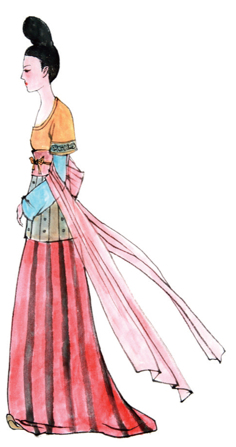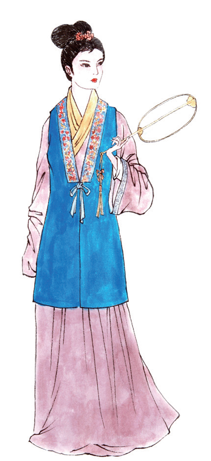 周代至汉代的衣裳都是宽衣大袖。南北朝时,衣裳由收窄的款式,逐渐演变成为襦裙。襦是短上衣,袖子比较窄。裙子有很多款式,主要体现在裙裁片的量以及色彩、纹样变化。襦裙的使用延续至清代。
