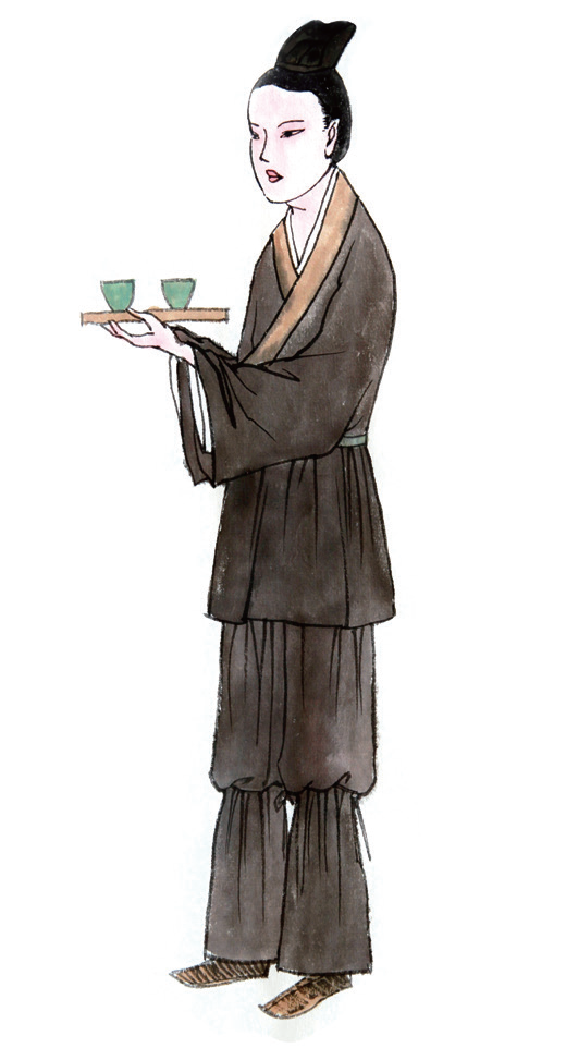 除了上述所说三种汉服款式,还有一种衣裤搭配的方式。汉代以前的汉人穿的袴也叫胫衣,即包裹两腿的筒形服饰,后来发展成为开裆裤。劳动者在劳动时会将裤子穿在外边。所以严格意义上说,袴褶搭配不能算是汉服的正式服装。