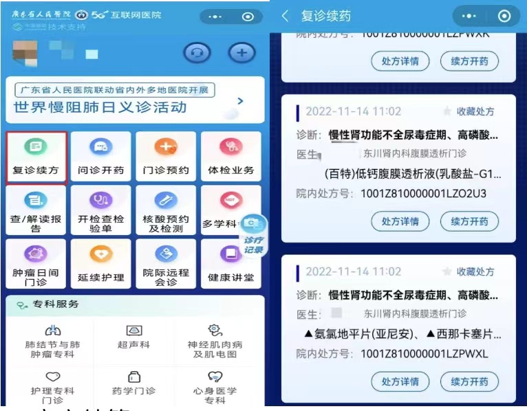 除了复诊续方,省医5G互联网医院新增多项便民服务功能: