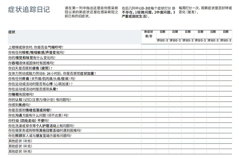 最后,附录居家康复期间症状追踪日记,观察病情是否好转,为后续康复及就医提供参考依据。