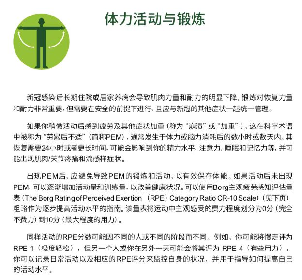 新冠感染后长期住院或居家养病会导致肌肉力量和耐力的明显下降。锻炼对恢复力量和耐力非常重要,但需要在安全的前提下进行。如果你稍微活动后感到疲劳及其他症状加重,这在科学术语中被称为“劳累后不适”(简称PEM),通常发生于体力或脑力消耗后的数小时或数天内。如出现PEM,就应当避免导致过PEM的那些锻炼项目,保存体能。如果未出现PEM,就可以逐渐增加活动量和训练量。