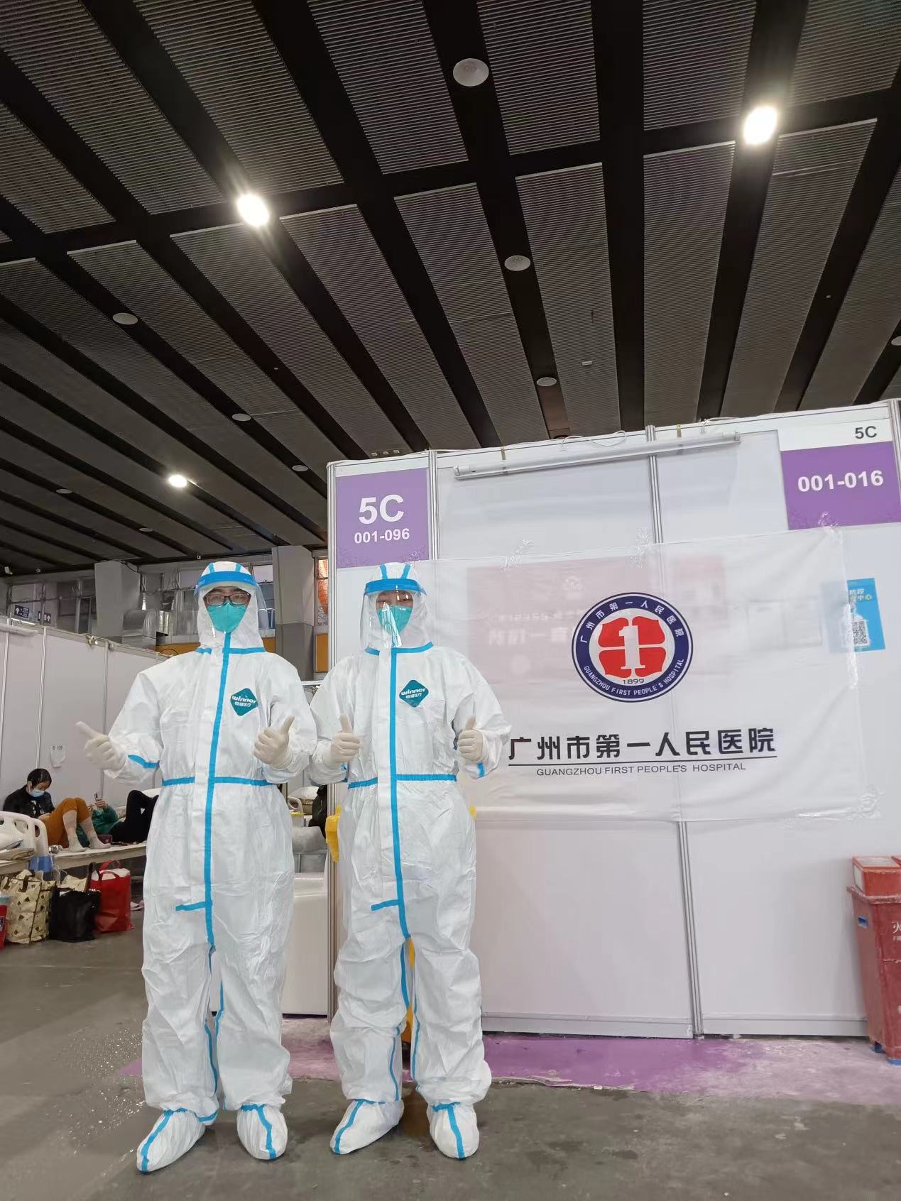 康复医学科陈吉祥与尹晓坤在方舱