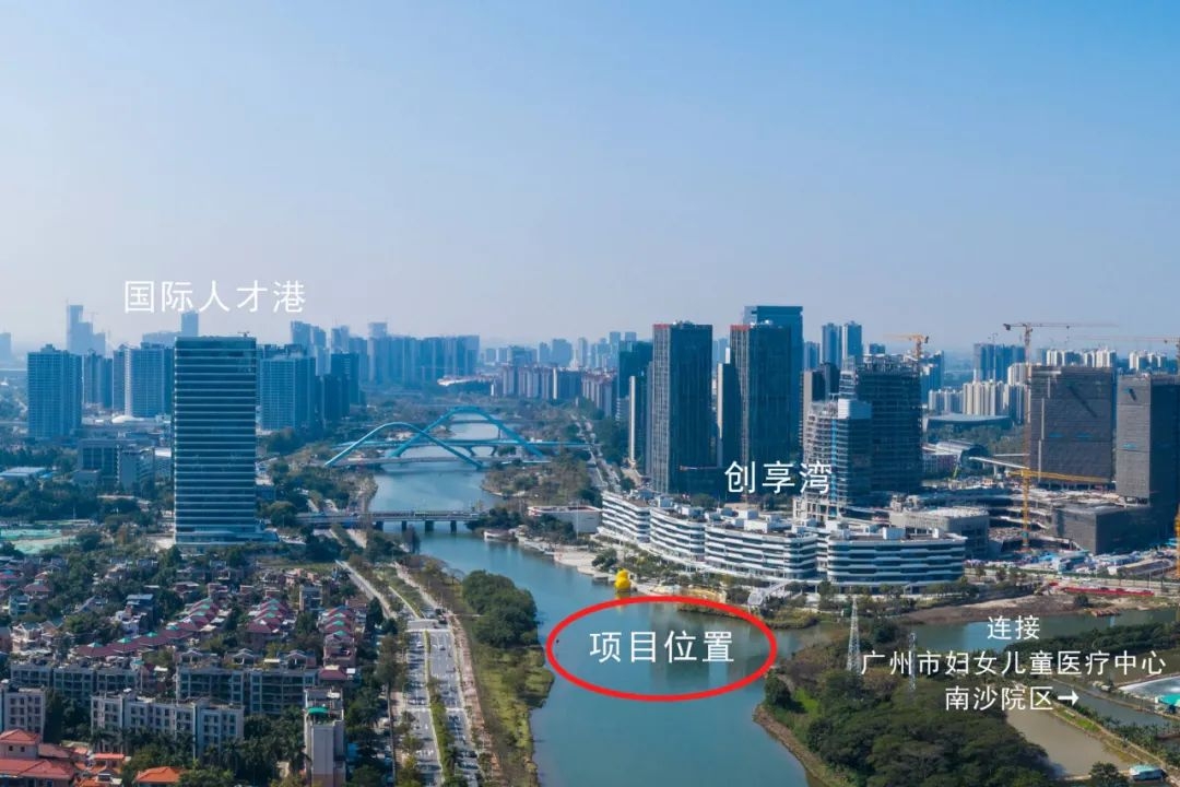 创享湾位于蕉门河畔,地处三岸交汇处,与进港大道的南沙牌坊南北相望,是南沙区集交流、规则衔接、青创、科创合作平台于一体的青创基地,总用地4万多平方米,总建筑面积超9万平方米。