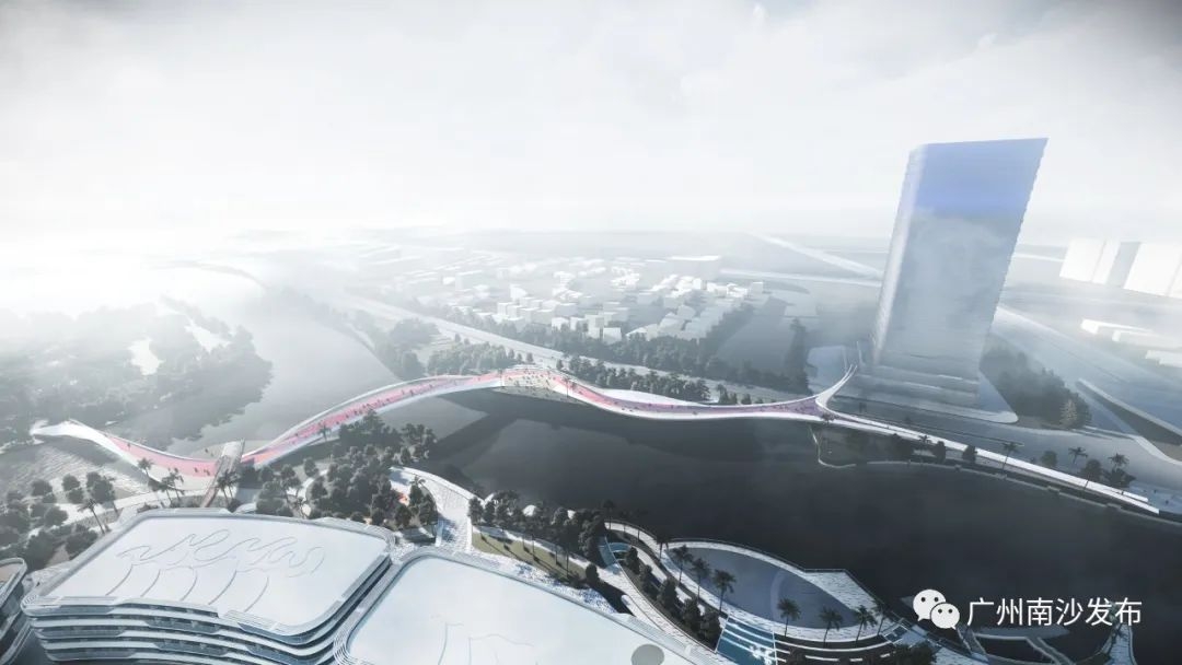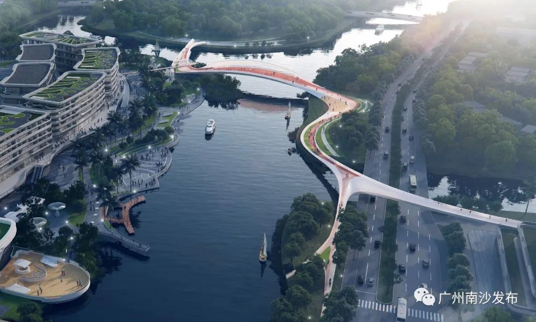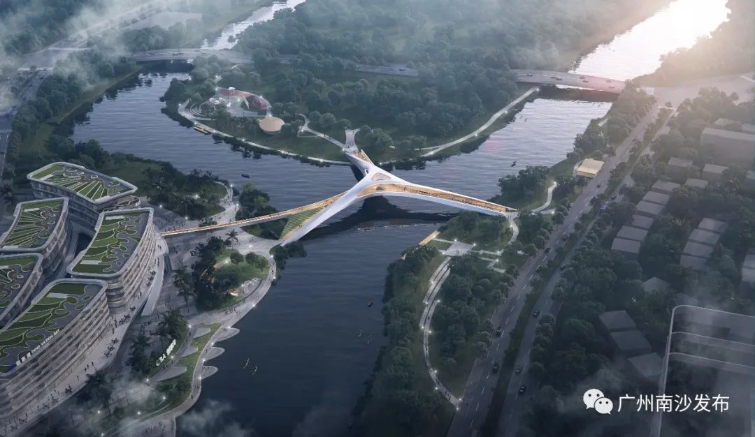 造型轻巧独特的步行桥,将成为蕉门河上的闪耀新星,体现广州南沙粤港澳全面合作示范区年轻、活力的形象。