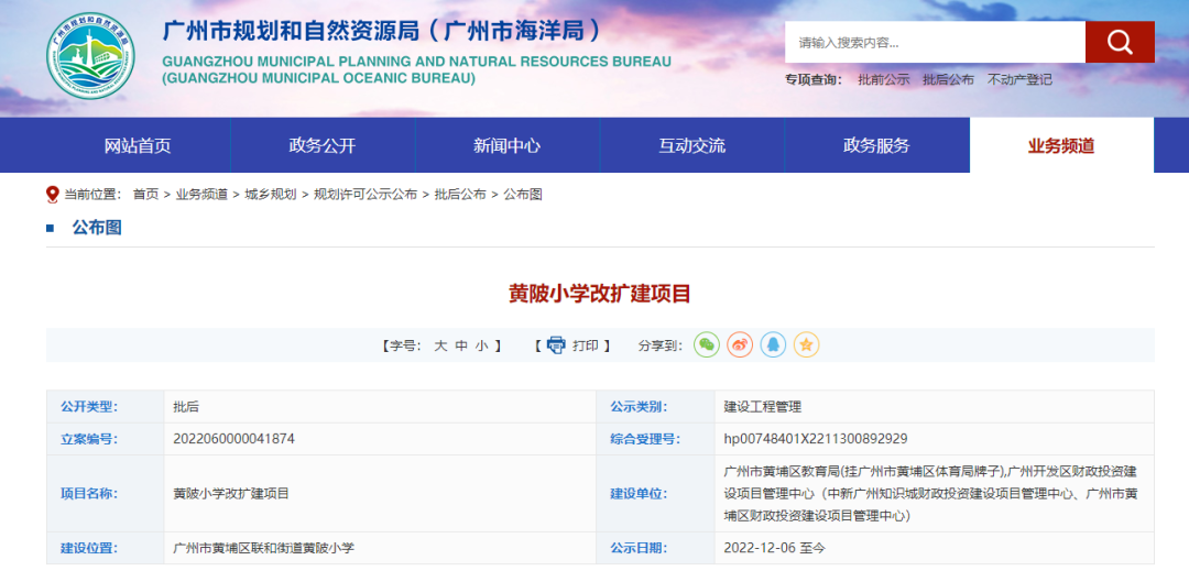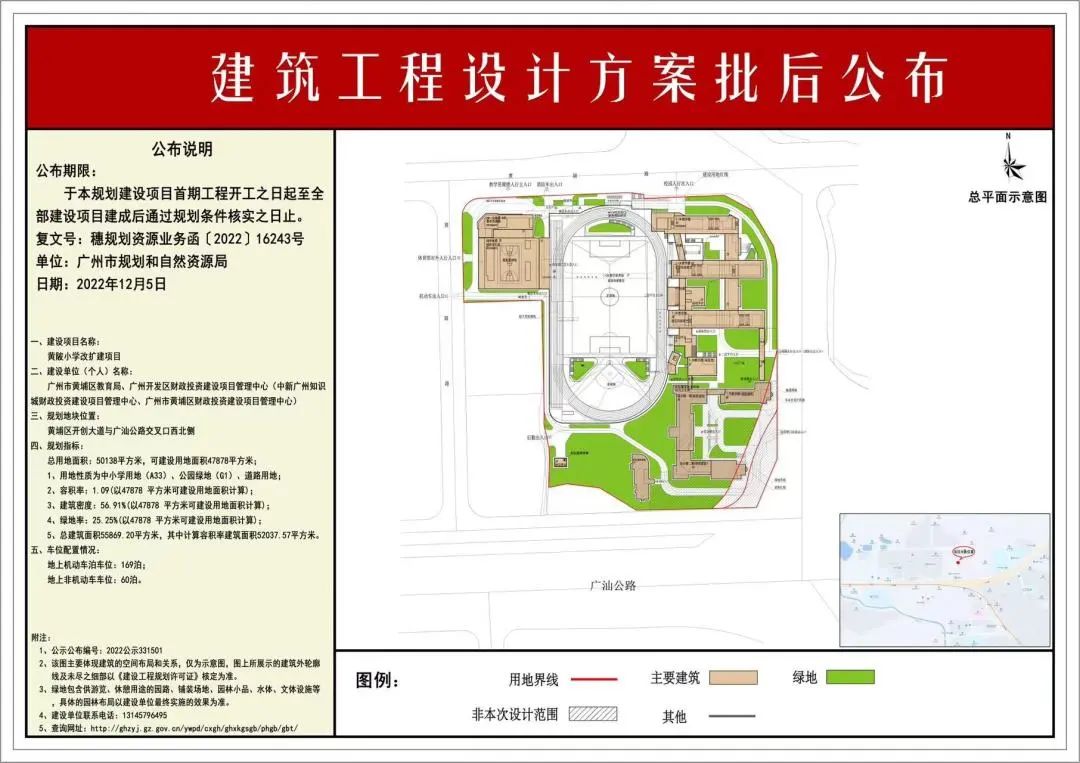 黄陂小学改扩建12月6日,广州市规划和自然资源局官网发布黄陂小学改扩建项目的建筑工程设计方案批后公布图。黄陂小学即现广州科学城实验小学。