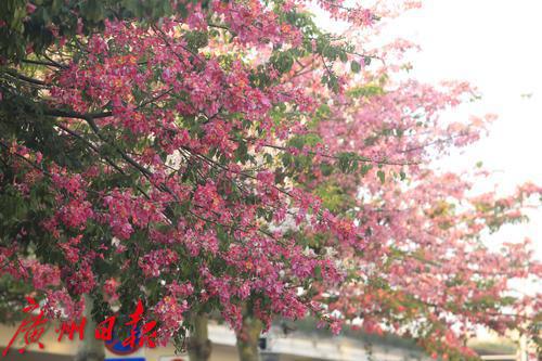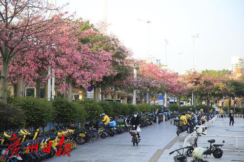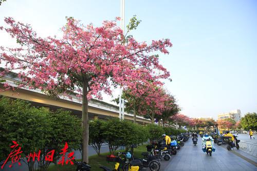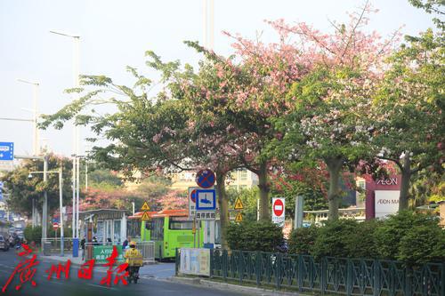 番禺大道北,沿路绽放的异木棉,让人感到有点童话的色彩。