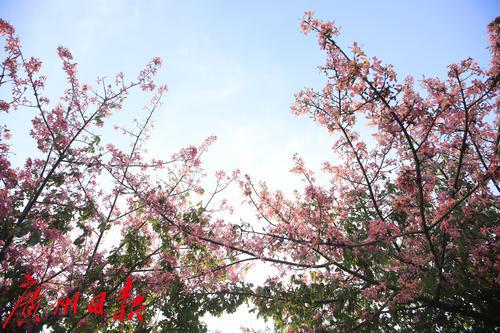 12月,北方进入飘雪的季节,南方的异木棉却正在灿烂地盛开。近日,天气回暖,阳光明媚。走在广州市区的公园、街头,时不时会看到一棵棵的异木棉满树繁花,让人眼前一亮心生欢喜。据了解,在二沙岛的艺术公园、海珠区的阅江路、越秀区的沿江路和番禺区的番禺大道北等地,都是欣赏异木棉的好地方。
