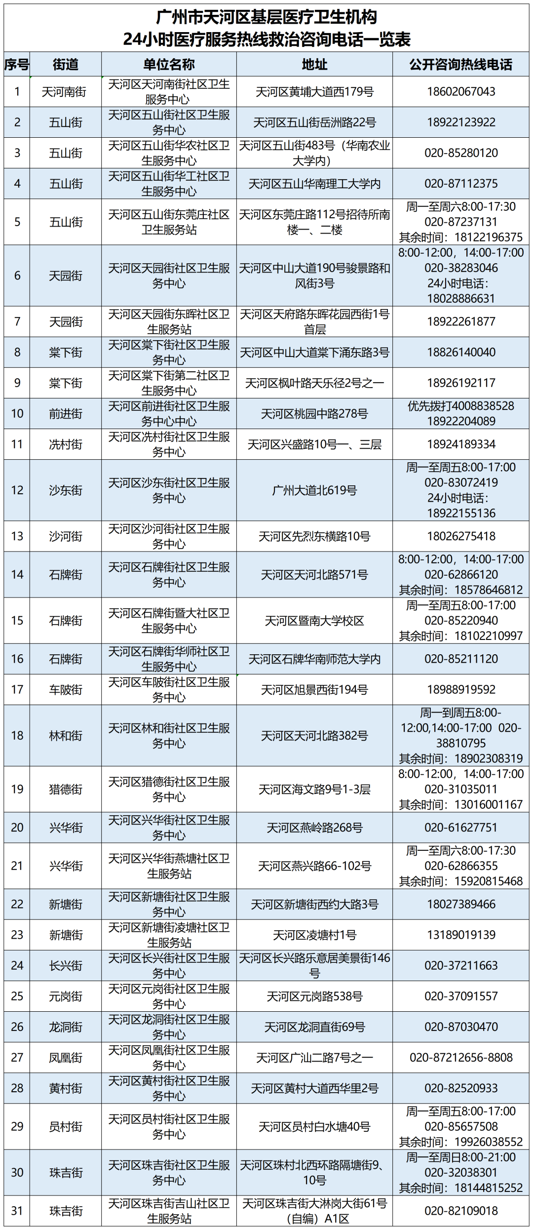 天河全区发热门诊(诊室)医疗机构名单