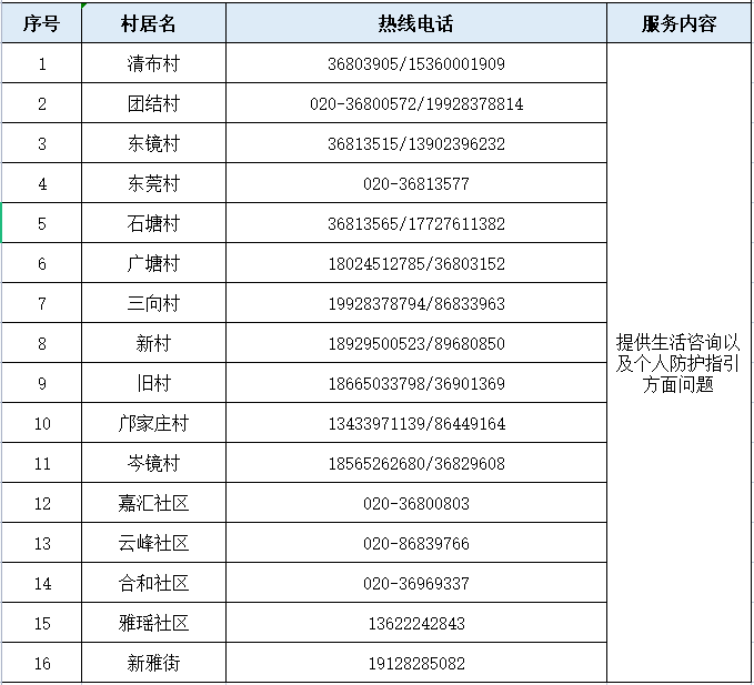 花城街热线电话汇总表