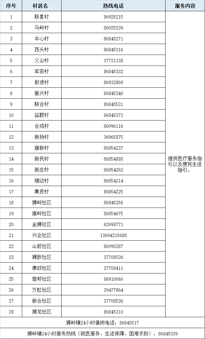 狮岭镇热线电话汇总表