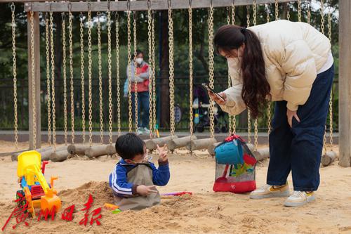 2022年12月11日下午,广州市儿童公园,不少家长趁着周末带在小朋友来此游玩。虽然天气转阴,小朋友们还是玩得不亦乐乎。据气象部门预测,随着新一波的冷空气来袭,广州在未来一周气温将普遍下降,市民应注意添衣保暖。