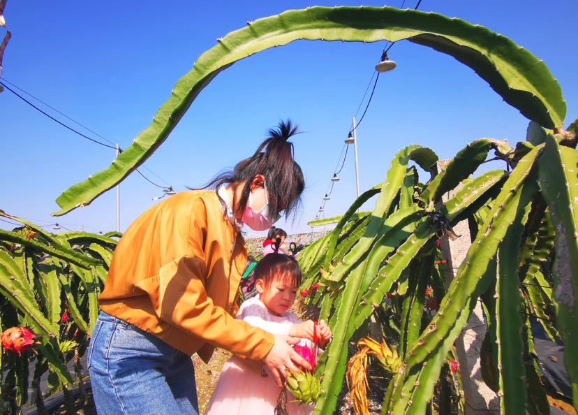 在光明北路东沙村段与丹山河碧道东环段之间的地块,除了采摘草莓、小番茄,其他种植户还种植了火龙果、番石榴,目前也是上市的时节。