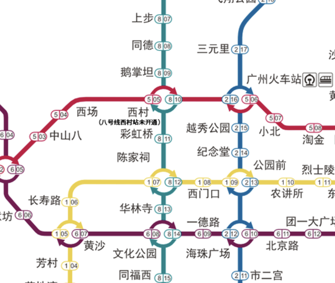 西村站开通后,原本需换乘两次、绕道出行的路线,未来换乘一次即可,路程缩短,地铁票价将相应下降,主要涉及起终点邻近西村站的五号线与八号线车站。