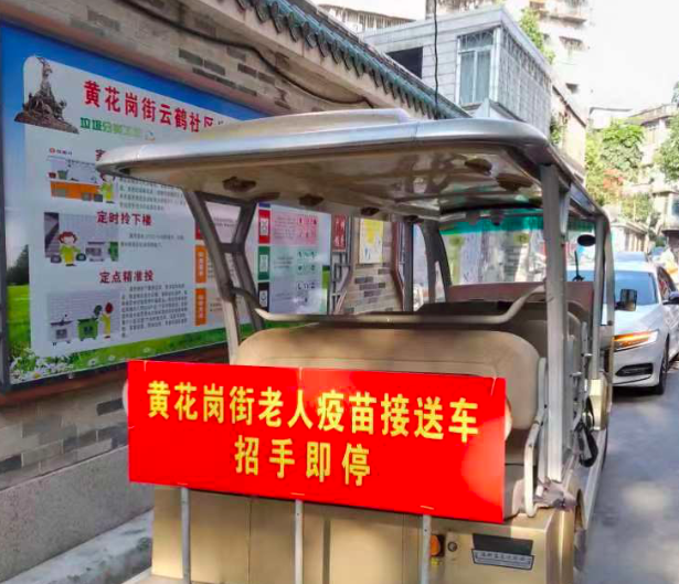 据了解,近段时间,黄花岗街在原有1个新冠疫苗固定接种点的基础上,增设了3个固定接种点,周一至周日全天开放。此外,街道还配置了8辆专项电瓶车,为15个社区开设15条专线,不限时间、人数,为有需要的老人提供接送服务,让老人们“出门就上车,下车就接种”。