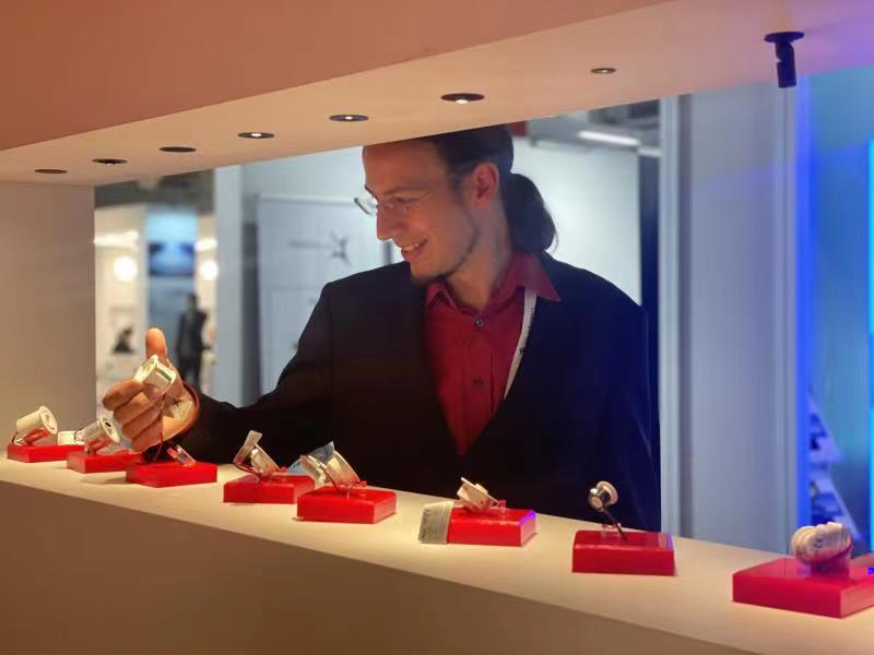 德国法兰克福展览中心,4.1展馆G75号展位,美颜灯“阿美”正静静地躺在展台上,等待来自全球各地商户的品鉴。在2022法兰克福国际灯光照明及建筑物技术展览会上,中国逾百家企业前往参展,其中近一半是广东企业。“阿美”是一盏专为五星级酒店开发的美颜灯,别看只是一个灯泡,它却光环夺目,刚刚在世界著名的新加坡地标金沙酒店上惊艳亮相,现在又来到了世界最大的照明展。