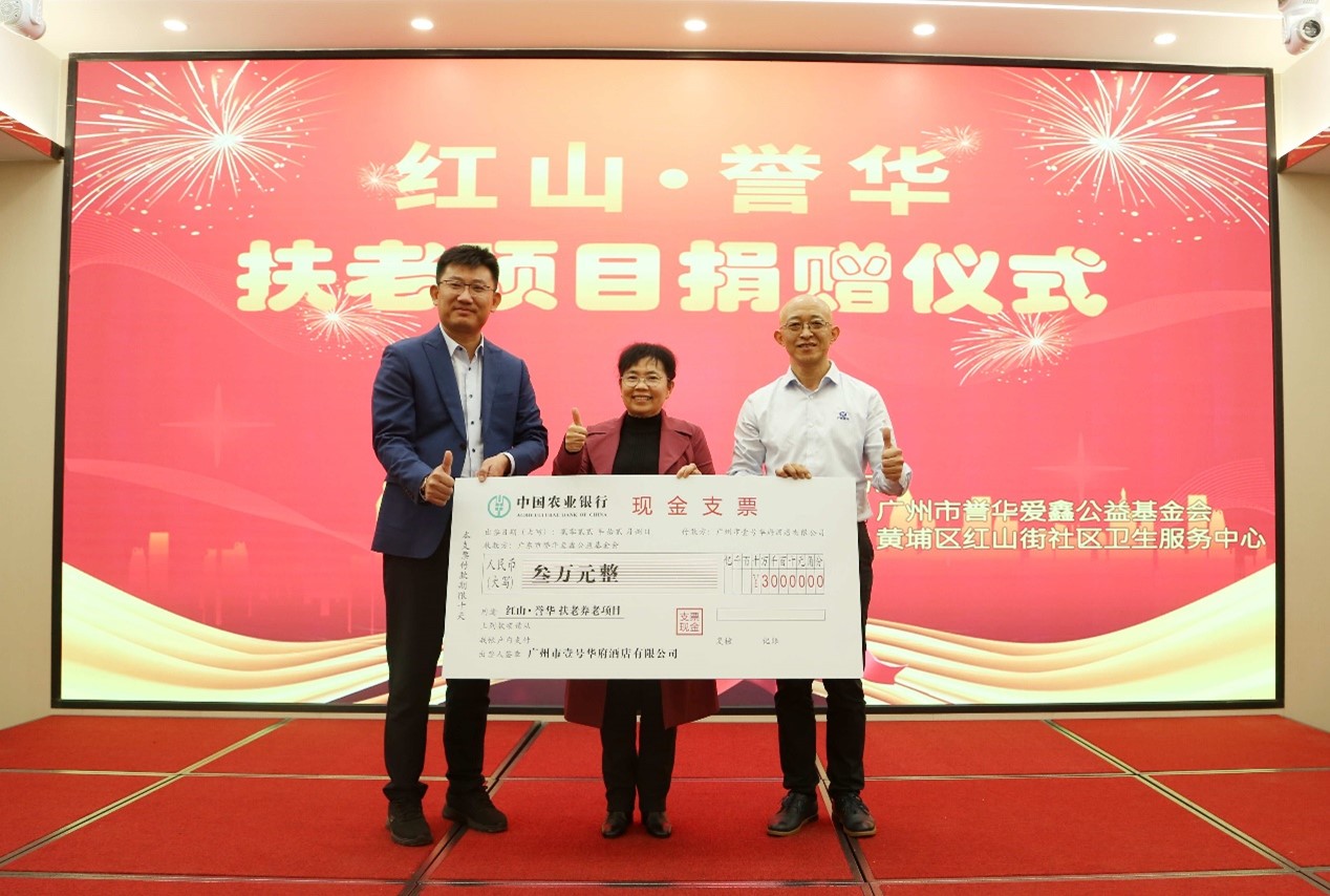 为促进黄埔区红山街社区卫生服务中心提高基层医疗服务水平和质量,改善患病老年人就医条件,为黄埔区老年人健康养老事业贡献力量,12月8日,“红山·誉华 扶老养老项目”捐赠仪式在广州举行。广州市誉华爱鑫公益基金会向“红山·誉华 扶老养老项目”捐赠医疗设备空气压力波4台、电动自行车3辆以及医疗物资一批等,价值51655元。广州市壹号华府酒店有限公司也慷慨向基金会捐赠3万元,用于基金会2023年支持“红山·誉华 扶老养老项目”。