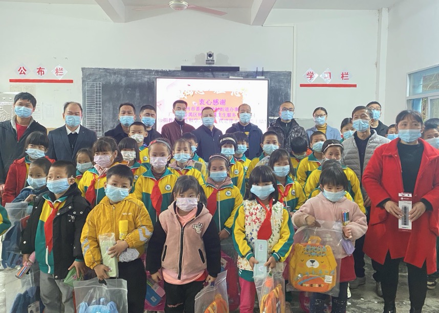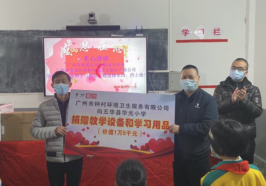 此行,广州市钟村环境卫生服务有限公司向该校师生捐赠教学设备和学习、生活用品,价值15000元,包括电脑、打印机、电脑桌、书包、画笔、文具盒、保温杯。在捐赠仪式上,领到学习用品的学生们非常开心;该校校长做了热情洋溢的讲话,他对钟村街道办事处、广州市钟村环境卫生服务有限公司心系山区学校师生安全和成长进步表示衷心的感谢!他激动地说:“是你们帮我们解决了实际困难,让我们山区学校的师生们感受到你们的大爱无疆!寒冬虽冷,我们仍然感受到阳光般的温暖。”钟村街道办事处的领导勉励学生们奋发向上,努力学习,争取考上大学,走出大山,长大后服务社会,报答各级各方的培养和关爱!