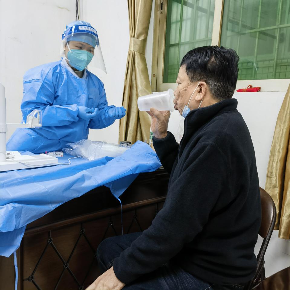“相较于传统肌注式疫苗,口吸入式接种无须注射,不会产生疼痛,过程方便快捷,对老年人非常友好。”医护人员介绍道。
