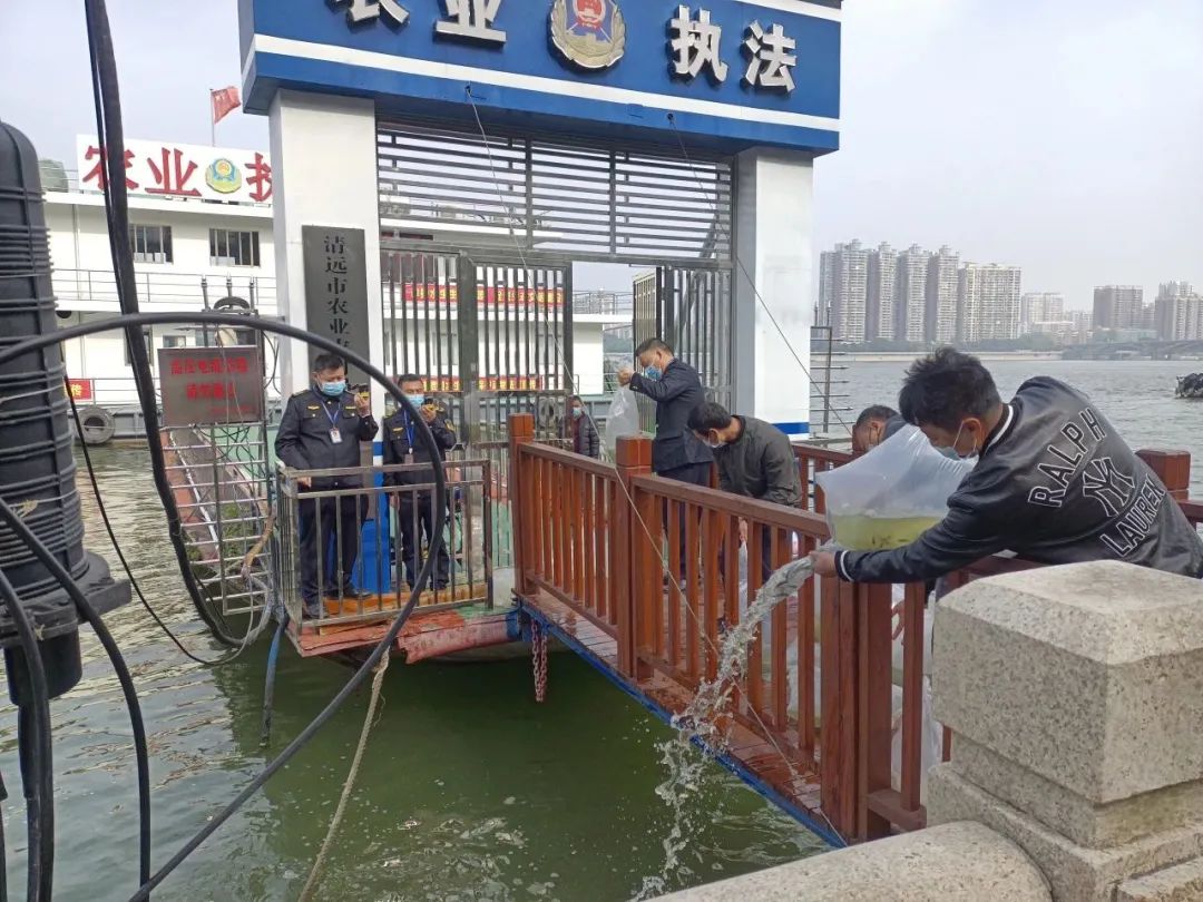 近日,两名市民在清城区农业执法人员的监督下,将自费购买的11300尾草鱼苗和鲢鱼苗在清远市农业执法码头开展增殖放流,以实际行动补偿生态损害,修复生态环境。