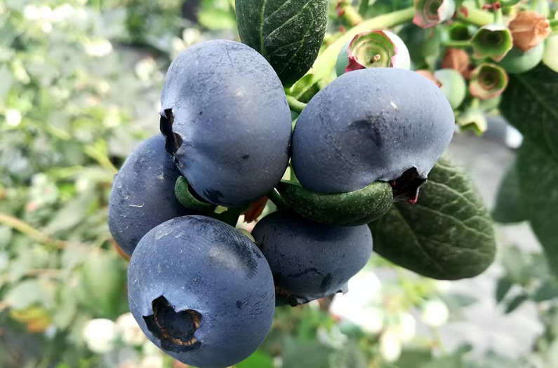 花都蓝莓是广州中植智慧农业发展有限公司的主营农产品,种植基地达1770亩,分布在花山镇五星村、花城村、狮岭镇集贤村、花东镇京塘村,年产量可达4000吨,采摘期在每年12月至次年4月。花都蓝莓采用植物组培育苗、优势杂交育种与非转基因技术,具有果大丰产、高甜高脆、采摘期长等特点,果实直径可达34mm以上,比我们的一元硬币(25mm)的直径还要大。果实富含花青素、鞣花酸等化合物,具有增强免疫力、预防血栓、抑制癌细胞、抗衰老、护肝等多种功效。