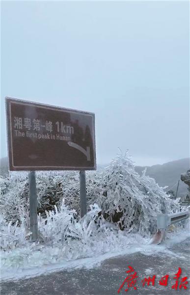 广东第一峰石坑崆的冰雪美景。