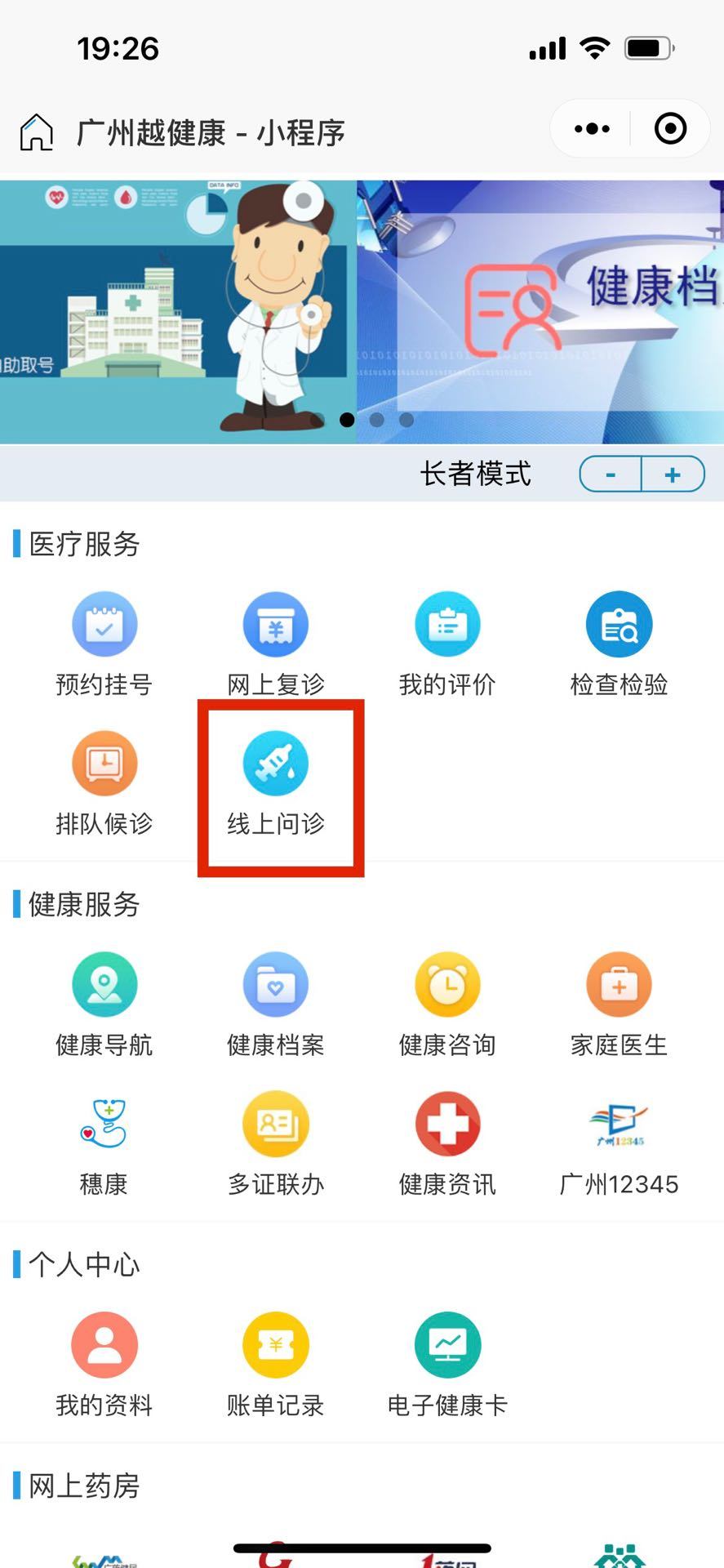 近日,记者获悉,如市民有线上问诊、购药需求,进入“广州越健康小程序”,便可以足不出户,实现线上问诊、买药一站式服务。