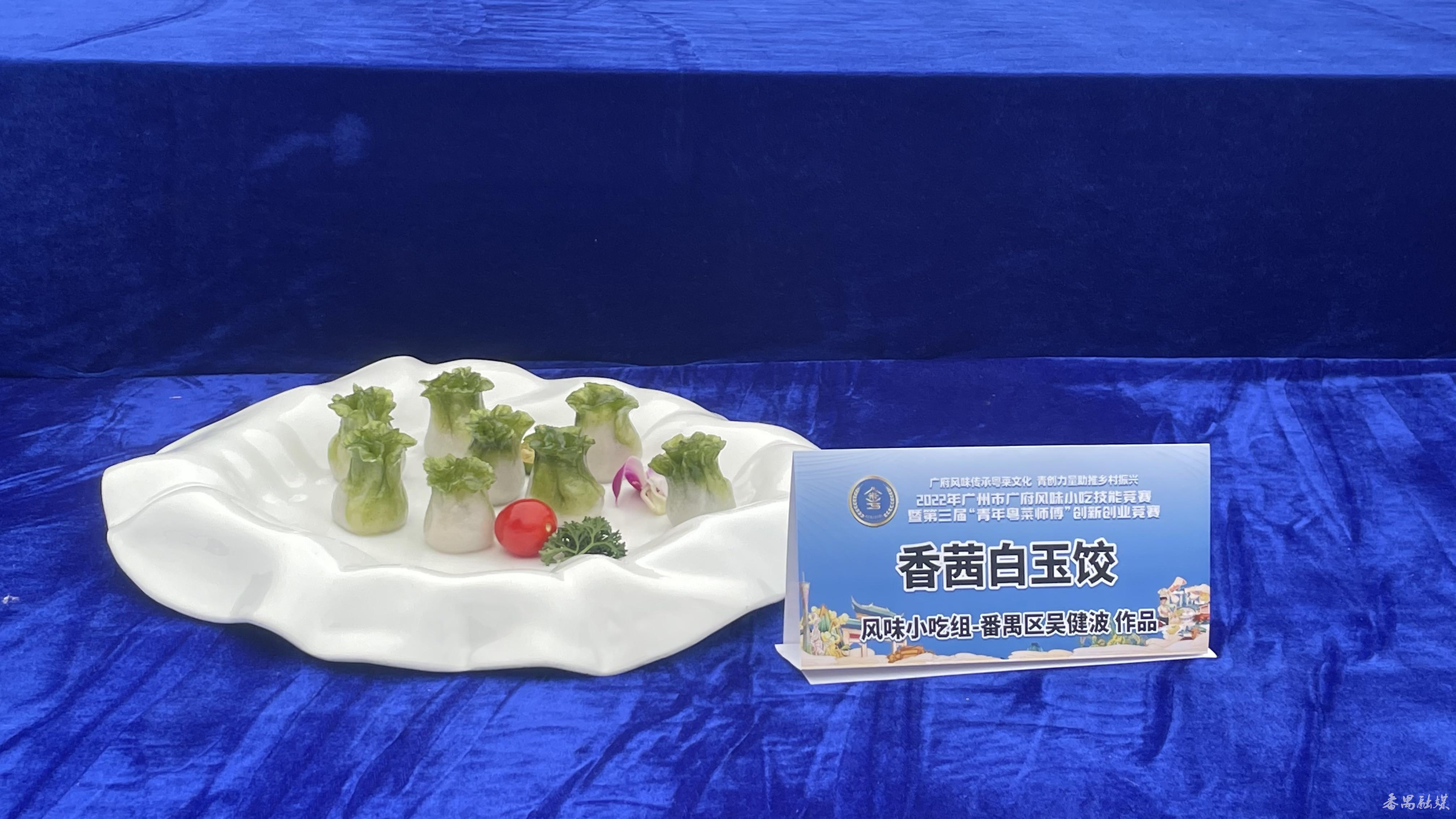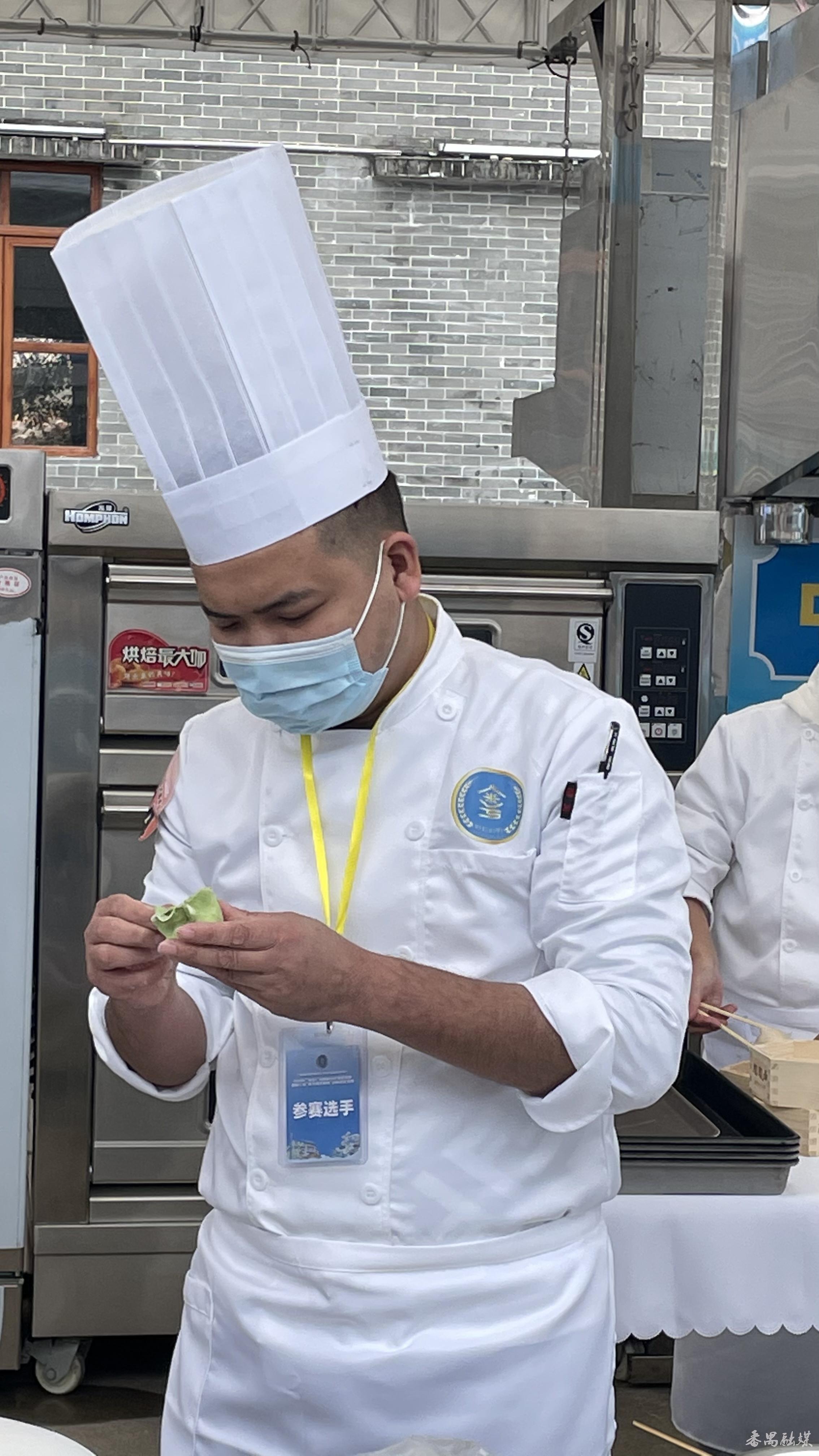 来自长隆酒店的吴健波凭借金汁绿叶酸粉和香茜白玉饺两道小吃获广府风味小吃组第二名。