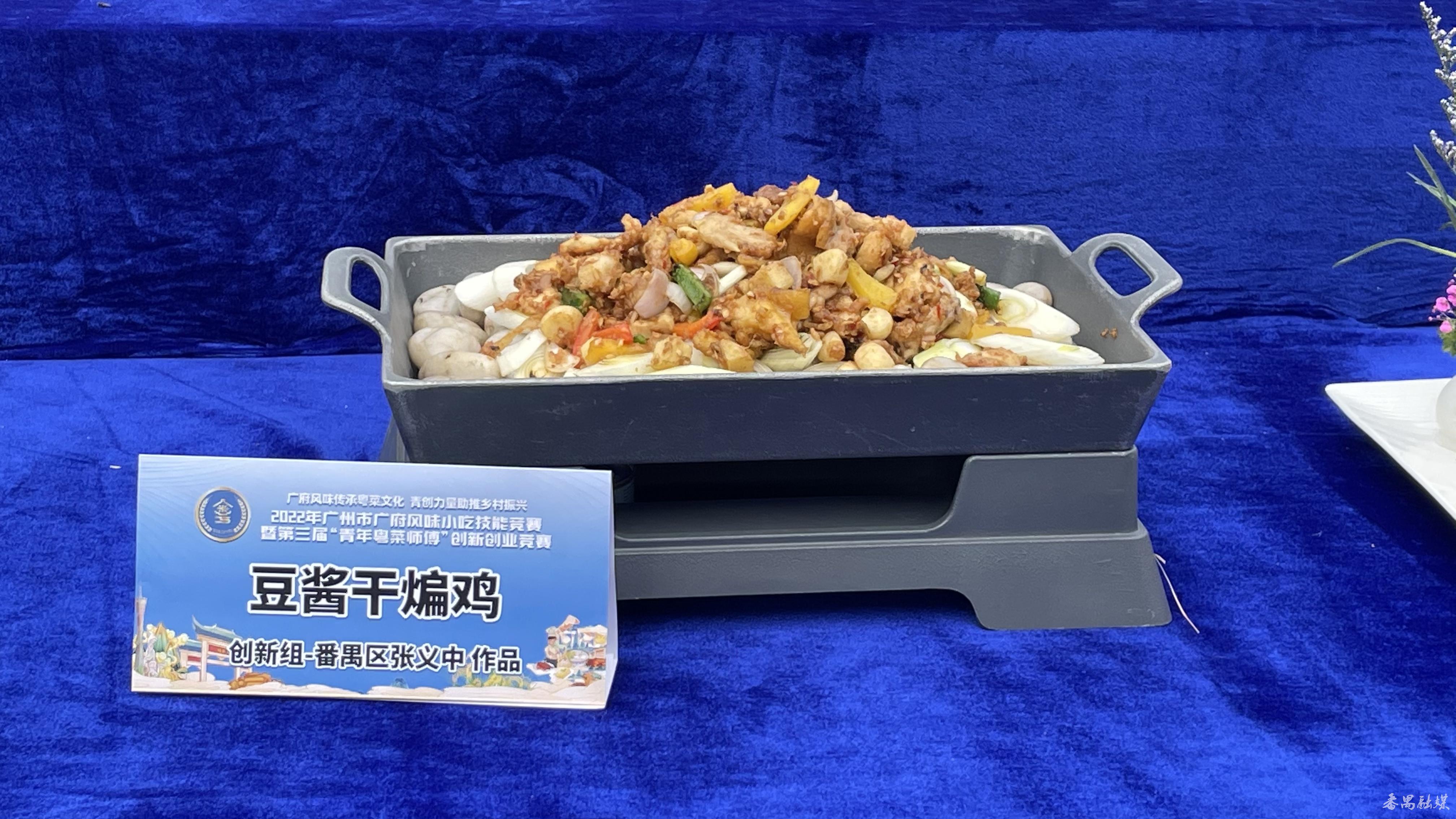 来自长隆酒店的张义中凭借豆酱干煸鸡和创意咕噜肉两道特色菜获青年粤菜师傅创新组第三名。