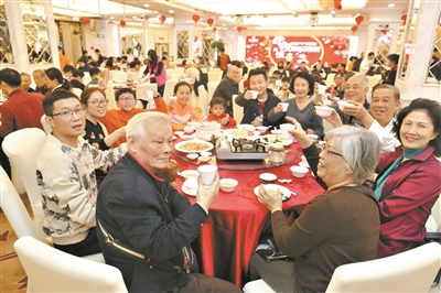 冬至,是一家团圆的日子。随着人们生活水平的提升,到餐厅吃团圆饭早已成为不少广州家庭的选择。许多广州人开始选择在酒楼过节,举家团聚,让大大小小的酒楼家家“墟撼”(热闹)。慢慢地,冬至成为广州食肆一年里最忙碌的节日之一。