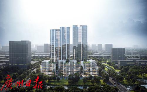 项目以“南沙新纪元,湾区新纽带”为设计理念,以独有的流水瀑布立面意向,打造园林化湾区科创之谷。
