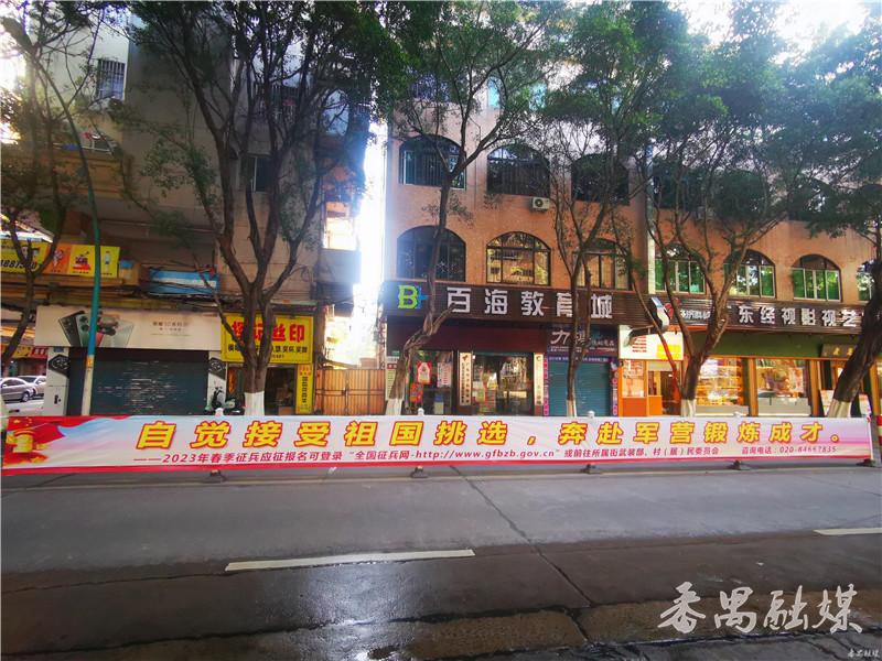2023年征兵报名工作已经启动。最近,在番禺区的大街小巷,一批宣传征兵横幅、宣传画、电子屏等载体随处可见,营造浓厚的征兵工作宣传氛围。