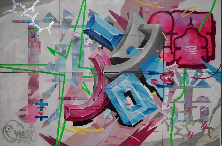 “名名之中”人物主题展继续,李冰冰组首先登场的是哈佛博士陈十三,他带来中文涂鸦作品《瑛瑶洛泽》,旨在用姓名涂鸦的形式回敬李冰冰给出的邀请卡。面对这样一幅风格属性较强的作品,在场的青年画家表达了不同的看法。顾天予认为这样一种表现形式容易给大众带来启发,徐圣伦则认为这幅画的形式大于内容不够直观,完全看不懂。