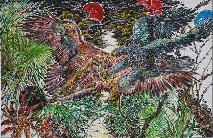 本期节目另一大看点当属策展人张智霖组的甄选比拼。央美画家尤勇本场带来木板油画《既济图》,创新用油画材料呈现有张力的国画风格;同时借用“霖”字的一部分,用一场雨来表达张智霖温暖的性格,一笔一画之间将国画山水的气韵展现得淋漓尽致。