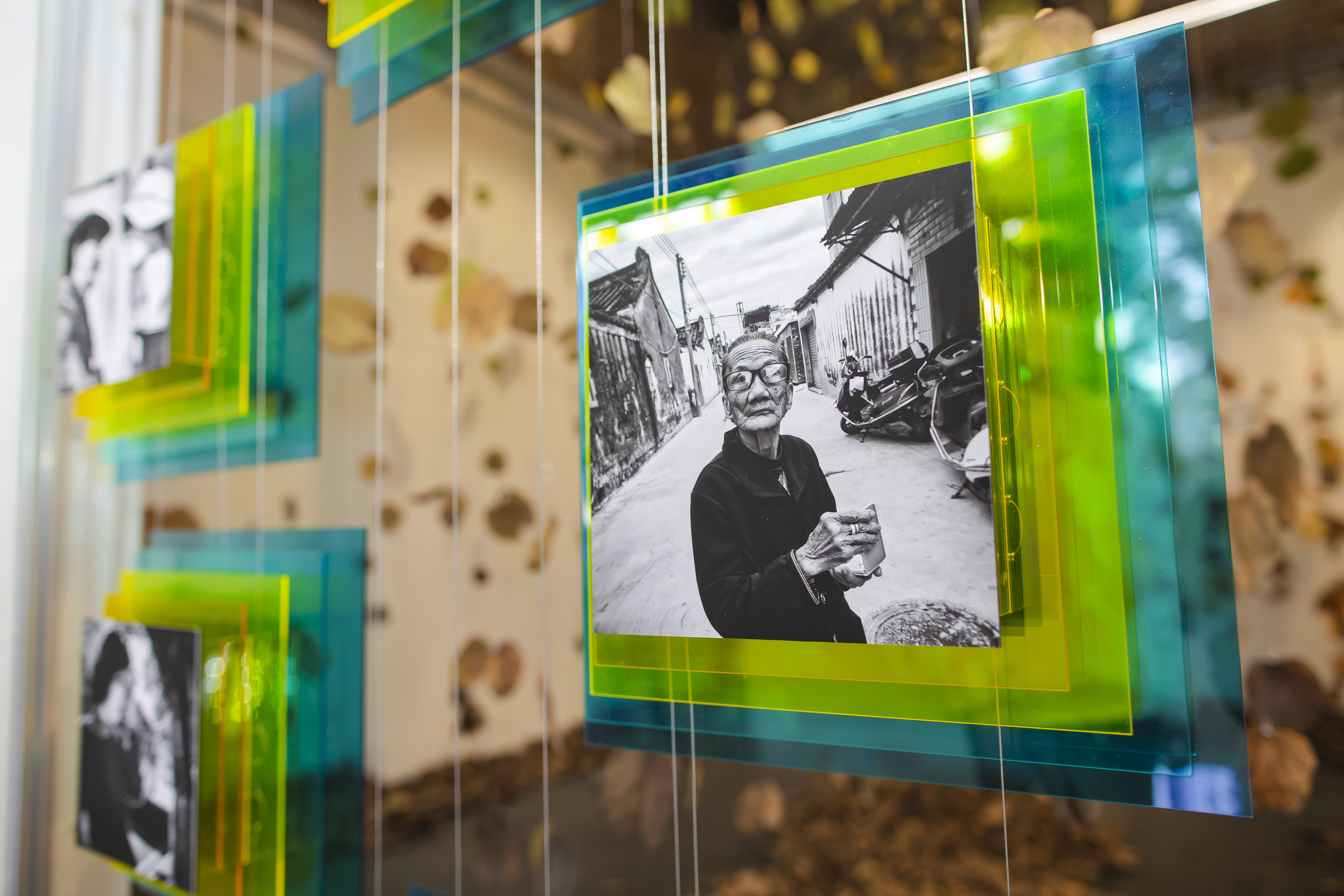 “影·张·相”用粤语念出来,就是“拍张照片”的意思,同时巧妙嵌入了张伟清的“张”,而展览也依据作品主题,顺应洋楼原本的空间特点,打造了“影”“张”“相”三个既相互独立,又联为一体的展厅。三个展厅中的照片并没有以常见的装框挂墙方式展现,而是分布于多组沉浸式的装置作品中,在光线和音乐的伴奏下,与现场观众进行毫无距离感的互动交流。