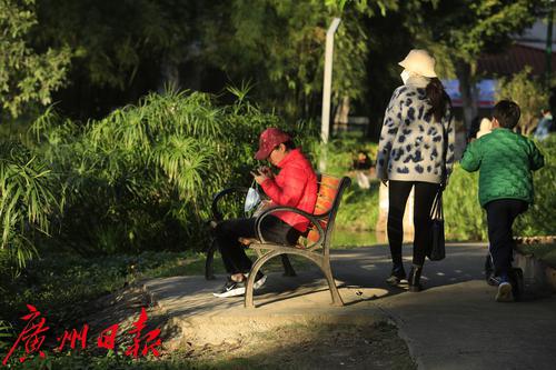 持续几天的冬日晴阳,不仅带来了干燥的天气,还给我们带来暖暖的、懒懒的感觉。每天午后,在番禺丽江花园,都有不少居民走到小区的醉心湖边晒太阳,享受美美的阳光和风景。气象台预计,未来三天补充南下的冷空气依然对天气大势影响较小,下周三起受新一股冷空气影响,广州云量增加,早晚寒冷。