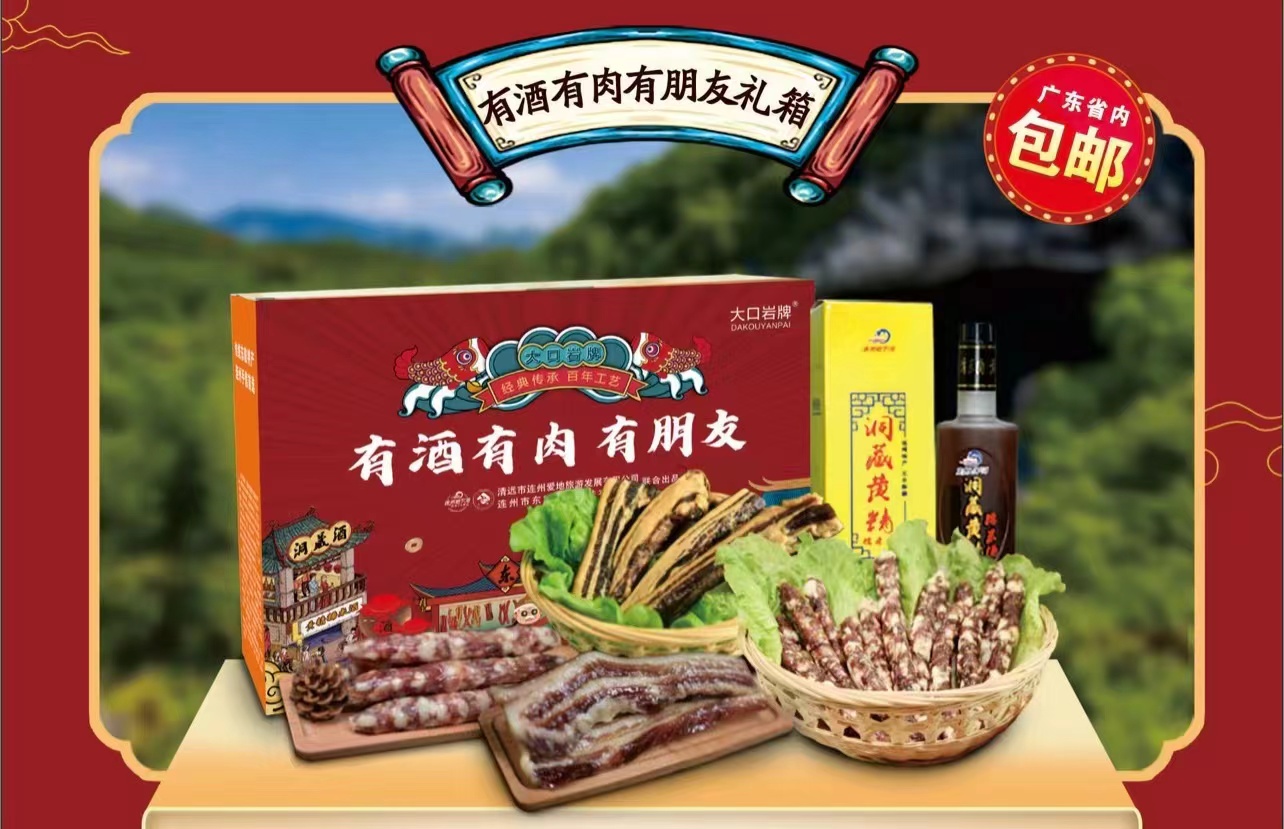 连州东陂腊味属国家地理标志保护产品,位于连州当地的地下河景区注册了“大口岩牌”东陂腊味。大口岩牌东陂腊味只依仗连州地下河独特的环境和气候全程自然风干晾晒,所以制成的腊味具有独特腊香,肥而不腻。据景区相关人士介绍,大口岩牌腊味现在已形成了系列化产品,目前在抖音、快手、小程序等线上平台上的销量占总销售量的4成左右。