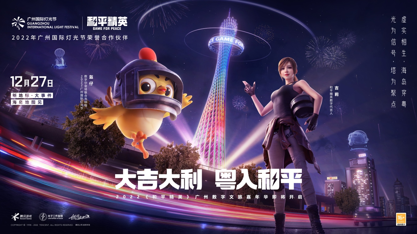 本届广州国际灯光节合作2022《和平精英》广州数字文旅嘉年华,与风靡全网的头部手游《和平精英》一同在游戏世界中打造2022广州国际灯光节数字分会场,共创以“大吉大利,粤入和平”为主题的游戏数字灯光表演,让千万玩家能在超拟真的开放世界里完成一次“穿粤行动”云旅游,跨时空欣赏羊城之美,云赏跨年灯光盛典。无需千里,相聚于城市数字盛会之中。同时,2022广州国际灯光节也特别邀请了《和平精英》光子鸡作为云看灯光节的联合吉祥物,同亮仔一起,在游戏数字分会场及云看灯光节小程序中带领大家一起迎光。更多合作亮点,可在“云看灯光节” 小程序数字分会场板块解锁。