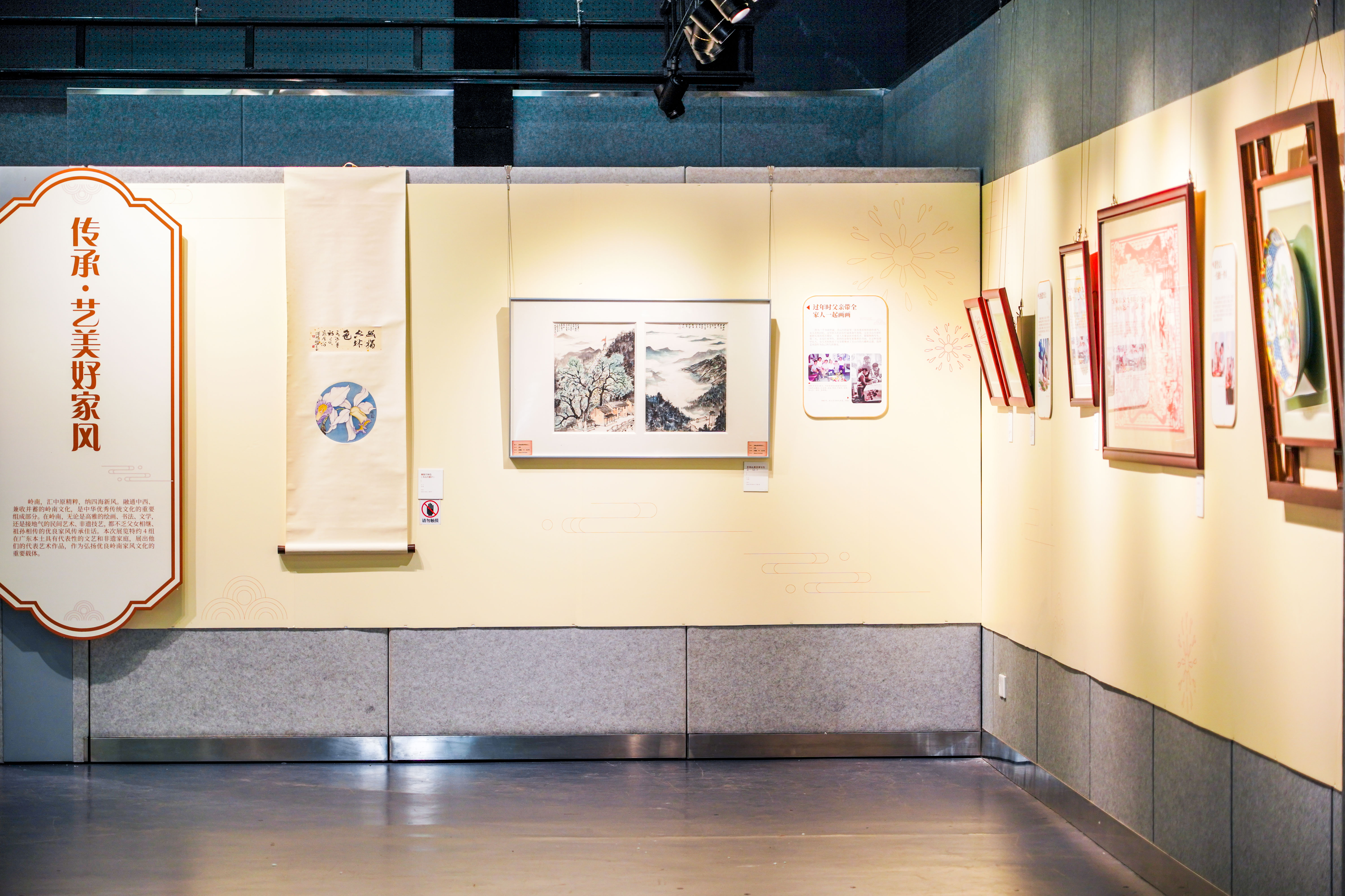 “传承·艺美好家风”板块邀请到岭南画派代表人物关山月家庭、广绣国家级代表性传承人陈少芳家庭、广彩省级代表性传承人许恩福家庭、广东剪纸省级代表性传承人饶宝莲家庭等4组在广东本土具有代表性的文艺、非遗家庭,展出能够体现他们家庭技艺传承的代表作,共同呈现具有岭南特色的艺美好家风。