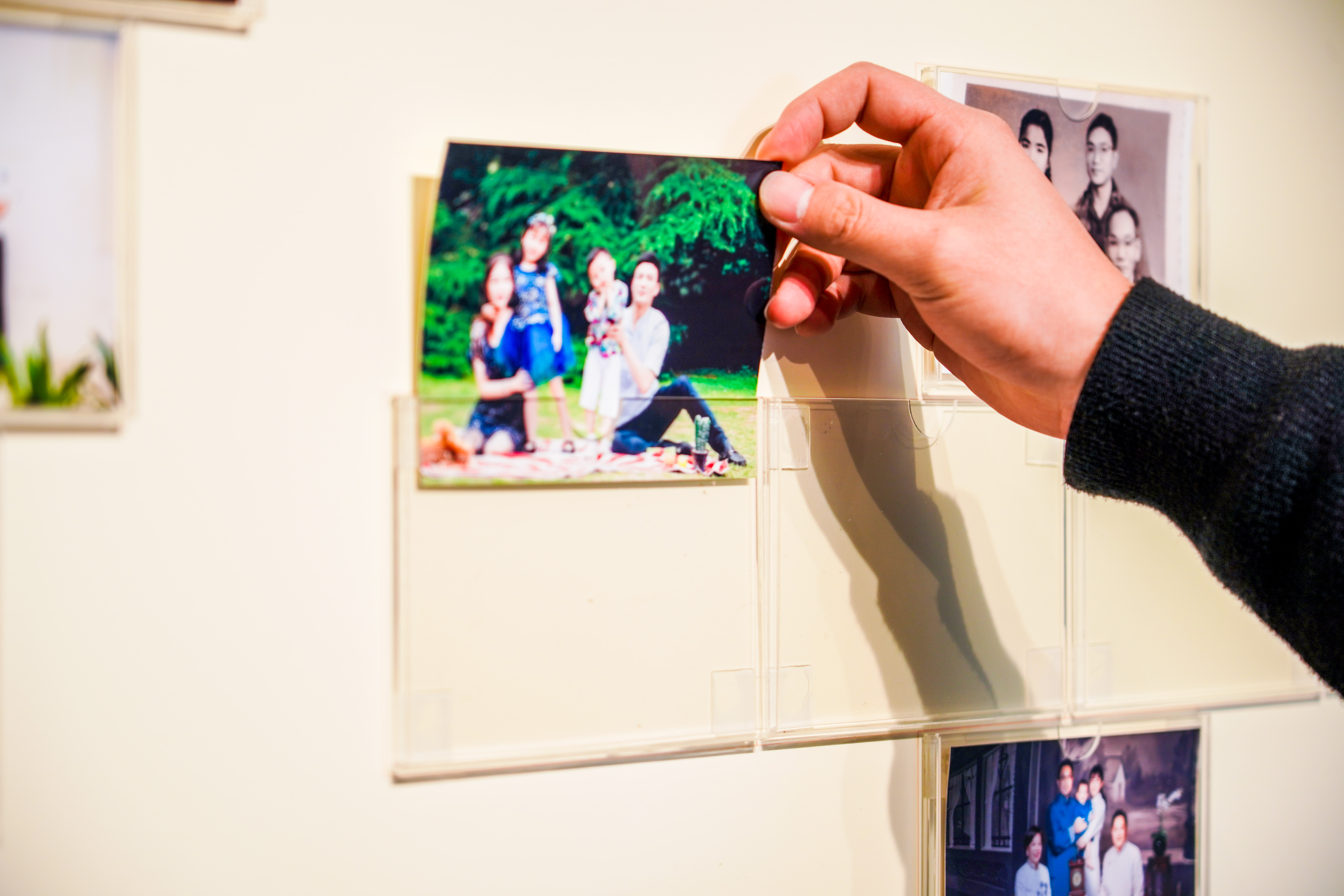 在展览现场,还设置了自助相片打印,只需扫码即可打印珍贵的家庭照片并取走,但同时,也需要留下一张与家人相关的照片,放进照片墙的空格里。据主办方介绍,这不仅是为了留下参观者的幸福瞬间,更是希望在这个照片墙逐渐填满的过程中,展览因每位参观者的到来而逐渐完整。