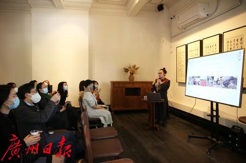 非遗服饰设计师金泳萱在非遗香云纱文化分享会上介绍香云纱的文化内涵与制造工艺